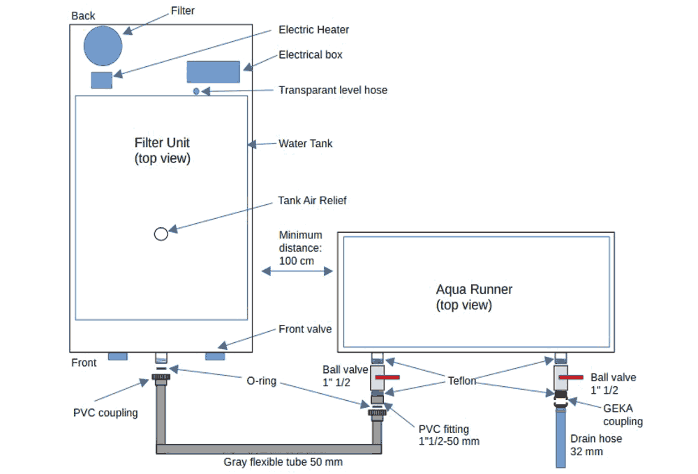 Sistema di pre-riscaldamento dell’acqua, con rapido serbatoio esterno da 600 litri, che consente di ridurre i tempi operativi di filtraggio e di riscaldamento dell’acqua (optional)