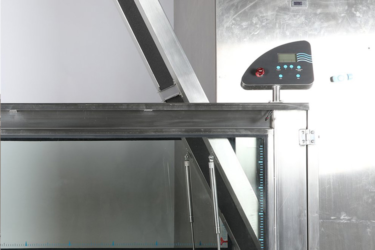 La quantità d’acqua nella vasca, può essere introdotta in base alle dimensioni del paziente trattato, la velocità del nastro (0,5-16 km/h) può essere facilmente impostata tramite un display posto sul profilo della vasca.