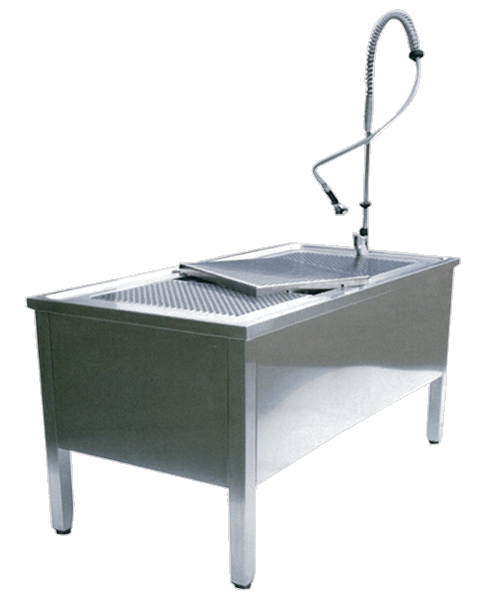 Vasca preoperatoria PlusVasca prechirurgica interamente in acciaio Inox AISI 304. L’interno è stampato per ridurre l’infiltrazione dei batteri all’interno. Griglia estraibile con speciale lavorazione a laser, pozzetto di scolo, miscelatore a doccetta normale. Dimensioni